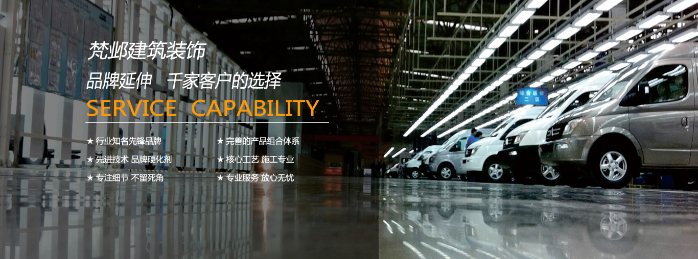 無錫梵鄴建筑裝飾有限公司產(chǎn)品主要分為:混凝土密封固化劑、環(huán)氧樹脂、耐磨硬化等工業(yè)、商業(yè)地面的表面處理。公司提供:環(huán)氧地坪、固化地坪、耐磨硬化地坪、工廠地坪、車庫地坪、倉庫地坪、地坪改造、水磨石硬化地坪等工程服務(wù)。經(jīng)過努力,公司積累了豐富的工程現(xiàn)場運(yùn)行管理及施工經(jīng)驗,融匯了先進(jìn)的管理理念及服務(wù)模式,形成強(qiáng)大的工程配套服務(wù)優(yōu)勢,做出了優(yōu)異的工程業(yè)績。